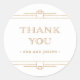 Ces stickers de mariage glamour ont une touche moderne sur l'art déco classique. Des bordures géométriques et des ornements ornés d'un style faux or ornent un élégant arrière - plan blanc pour un look de mariage spectaculaire et vintage. La typographie classique fausse or dit "merci", ce qui en fait parfait pour ajouter à vos faveurs de mariage.