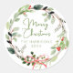 Aquarelle de Noël vert doux design de couronne de Noël avec saint et un arc rouge délicat. Personnalisable avec votre nom de famille ou message personnel.