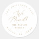 Cet or délicat que nous avons déplacé des autocollants d'adresse de retour circulaire sont parfaits pour une carte de vacances moderne ou une enveloppe de faire-part mobile. Le design minimaliste romantique présente une belle et élégante typographie de champagne jaune doré sur un arrière - plan blanc au look épuré et simple.