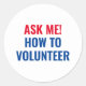 Sticker Rond Demandez-moi comment Bénévolat rouge bleu simple