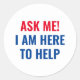 Sticker Rond Demandez-moi que je suis ici pour aider les rouges