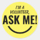Sticker Rond Demandez-moi un insigne de bénévolat jaune