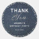 Un simple, moderne, élégant et chic fête d'anniversaire ou tout autre événement merci autocollant modèle avec un arrière - plan denim, le mot VOUS couvert de strass (simulé, pas de vraies pierres) et dans le script de calligraphie moderne, et la typographie en blanc. Un design chic "denim et diamants" pour une femme de n'importe quel âge, à ses 21, 30, 35, 40ème, 50ème, 55ème, 60ème, 65ème, 70ème, 80ème ou 90ème anniversaire, pour une douche nuptiale denim et diamants, etc !