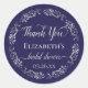 Ces beaux autocollants sont parfaits pour remercier les invités à une douche nuptiale. Le design comporte un texte de script sophistiqué sur un arrière - plan bleu marine avec une bordure en dentelle gris argenté. Le texte indique le Merci, avec la place pour le nom de la mariée à être et la date. Élégants et sophistiqués, ces autocollants sont sûrs de plaire.