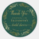 Ces autocollants élégants sont parfaits pour remercier les invités lors d'une fête de mariage. Le design présente un texte en écriture dorée fantaisiste sur un fond vert émeraude avec une bordure de dentelle en faux foil doré. Le texte est entièrement personnalisable et lit "Merci de vous être joint à nous pour la fête de mariage de [nom de la future mariée]" avec de la place pour la date en bas. Idéal comme étiquettes de faveur ou sceaux d'enveloppe !