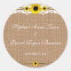Sticker Rond Dentelle rustique, Fleurs Solaires, Mariage Burlap