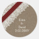 Sticker Rond Dentelles et burlap rouges FAUX, joints mariages