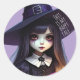 Sticker Rond Déplaisant mignon, sorcière violette Anniversaire,