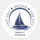 Autocollants nautiques bleus et blancs pour shower de mariage / enterrement de vie de jeune fille avec voilier et phrase "dernière voile avant le voile". Personnalisez-le avec les détails de votre événement.