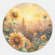 Sticker Rond Des tournesols dans un pré