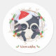 Arrière - plan de Noël avec lettrage et un joli autocollant rond racoon classique.