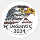 DeSantis 2024 montre un aigle américain patriotique avec des étoiles et des rayures en remplissage, disant les mots "DeSantis 2024". Cet aigle sait de quel côté il est.