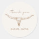 Sticker Rond Desert Boho Cow Skull Wedding Thank You