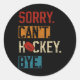 Sticker Rond Désolé Can#39 ; t Hockey Bye Funny Hockey Player V