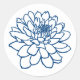 Sticker Rond Dessin Chrysanthemum - Style Indigo Bleu