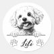 Sticker Rond Dessin personnalisé de chien Bichon Frise à la mai