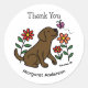 Chocolat Labrador Flowers Cartoon Classic Round Sticker pour les propriétaires du Labrador. Adorable chiot du Labrador au chocolat jouant un papillon dans le jardin avec de mignonnes marguerites. C'est un rappel de la beauté et de l'harmonie de la nature. Caricature de chien de Labrador Retriever, fantastique et amusante, créée par Naomi Ochiai du Japon.