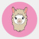 Sticker Rond Dessin Visage Llama Rose
