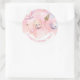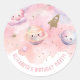 Deux à la Lune Fille rose Espace Anniversaire Autocollant Rond Classique