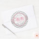 Sticker Rond Deux éléphants roses gris blanc Merci Chevron