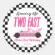 Sticker Rond Deux Fast Pink Race Car 2e fête d'anniversaire