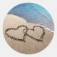 Belle photo originale de deux coeurs écrits dans le sable le long de l'eau bleue de l'océan pour signifier amour et romantisme. Grand concept pour les prochains mariages de la Saint-Valentin et de l'été.