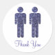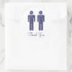 Deux silhouettes d'hommes en faux parties scintillant bleu avec le texte qui lit le Merci.