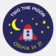 Sticker Rond Deux Moon Space Rocket Ship 2e anniversaire