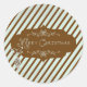 Joyeux stickers Diagonal Stripe rond avec une bannière marron avec un texte fantaisie et des rouleaux qui lit Joyeux Noël sur un arrière - plan de bandes diagonales bleues et marron! Recherchez les cartes de voeux, les étiquettes de adresse, les timbres-poste et les enveloppes assortis pour les fêtes de cerfs!
