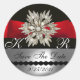 STICKER ROND DIAMOND STARS BLACK WHITE RED RIBBON MONOGRAM