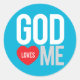 Dieu m'aime. Une simple typographie blanche avec un coeur rouge sur un arrière - plan bleu vif. Cette déclaration est disponible sur plusieurs produits. Un cadeau parfait pour les chrétiens !