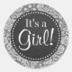 Sticker Rond Dim Grey Damask ; Retro Chalkboard