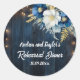 Sticker Rond Dîner de répétition floral blanc bois bleu rustiqu