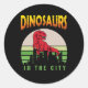 Sticker Rond Dinosaure dans la ville | Design de dinosaure