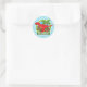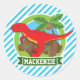 Sticker Rond Dinosaure rouge T-Rex; Bleu et Blancs