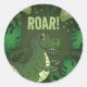 Sticker Rond Dinosaure T-rex Vert Avec Texte Roar