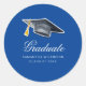 Autocollant rond classique de chapeau de diplômé 2025 Pompon Calligraphie Bleu avec illustration de chapeau de diplômé avec pompon en feuille d'or. Parfait pour vos invitations de fête de diplôme, annonces ou cartes de remerciement.