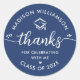 Sticker Rond Diplômé bleu moderne Merci Script Cœurs Casquette