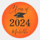 Sceaux d'enveloppe de papeterie de remise de diplômes moderne en métal brossé orange et noir ou autocollants cadeau avec un script manuscrit chic CLASSE DE et année modifiable avec un bonnet de graduation noir ou toque ou chapeau de diplômé et le nom de votre diplômé. Ajoutez aux invitations de remise de diplômes, aux annonces et aux cartes de remerciement ou utilisez-les comme autocollants cadeau de remerciement pour la fête de remise de diplômes. ASSISTANCE : Pour obtenir de l'aide concernant la modification de conception / la personnalisation, le changement de couleur, le transfert du design sur un autre produit ou si vous souhaitez des articles coordonnés, contactez le concepteur AVANT DE COMMANDER via l'onglet MESSAGE de discussion Zazzle ou par courriel à makeitaboutyoustore@gmail.com.