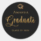 Sticker Rond Diplômé casquette noire nom or élégant