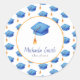 Mignonne personnalisez les autocollants avec un motif et l'illustration d'une casquette bleue de graduation avec un goût d'or. Personnalisez le texte avec vos propres informations et utilisez ces autocollants pour compléter votre papeterie de graduation. Illustré et dessiné par Patricia Alvarez.