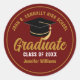 Cette autocollante de diplômé senior personnalisée moderne or et carmin présente une typographie élégante du nom de votre lycée ou collège pour la promotion de 2026. Personnalisez avec votre année de fin d'études sous l'écriture manuscrite noire chic et la casquette de diplômé noire pour des sceaux d'enveloppe de remise de diplôme personnalisés pour une fête ou une annonce.