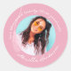 Célébrez votre diplôme avec style et élégance avec cet autocollant de diplôme rose rétro moderne ! Avec un espace photo pour ajouter une touche spéciale au design, cet autocollant élégant est parfait pour toute célébration. Ajoutez-les à vos faveurs, cadeaux et plus encore ! Préparez-vous à commémorer votre journée spéciale avec ce design unique !
