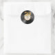 Ajoutez une touche de style à votre célébration de 50e anniversaire de mariage sur vinyle rétro espagnol avec cet autocollant rond, parfaitement conçu pour compléter vos invitations et décorations. Avec un graphique charmant d'un disque vinyle, cet autocollant présente un numéro 50 doré et la phrase "Años de Amor", personnalisée avec les noms du couple pour une touche unique.