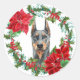 Sticker Rond Doberman Pinscher Poinsettia Holly Wreath