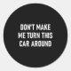 Sticker Rond Don't Make Me Turn This Car Around, Funny, Jokes,