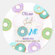 Donut 1er anniversaire garçon Classic Round Sticker est un design mignon avec des beignets sucrés pour les petites filles