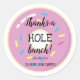 🍩 Ce mignon et moderne "merci un tas de trous! " baby shower merci autocollant présente un arrière - plan blanc avec un beigne rose et des arroses. Personnalisez-vous pour répondre à vos besoins.