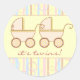 Annoncez la grande nouvelle avec ce design autocollant amusant. Deux chariots roses à rayures bleues, roses et jaunes font la faire-part amusante sur votre baby shower ou vos enveloppes faire-part.