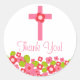 Sticker Rond Douce Croix rose Fleur Première Communion Sainte